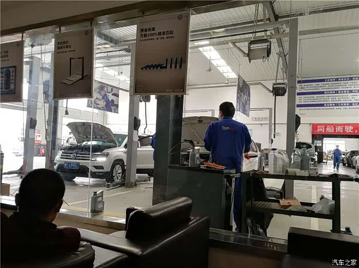 还是在客户休息区喝杯茶,看着维修车间来的舒服