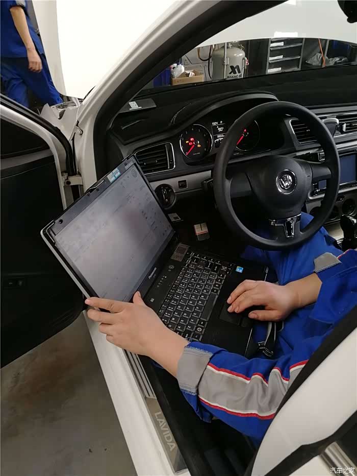 另一位师傅在车内调整数据,就是同志们常说的拆卸节气门需要恢复出厂吧