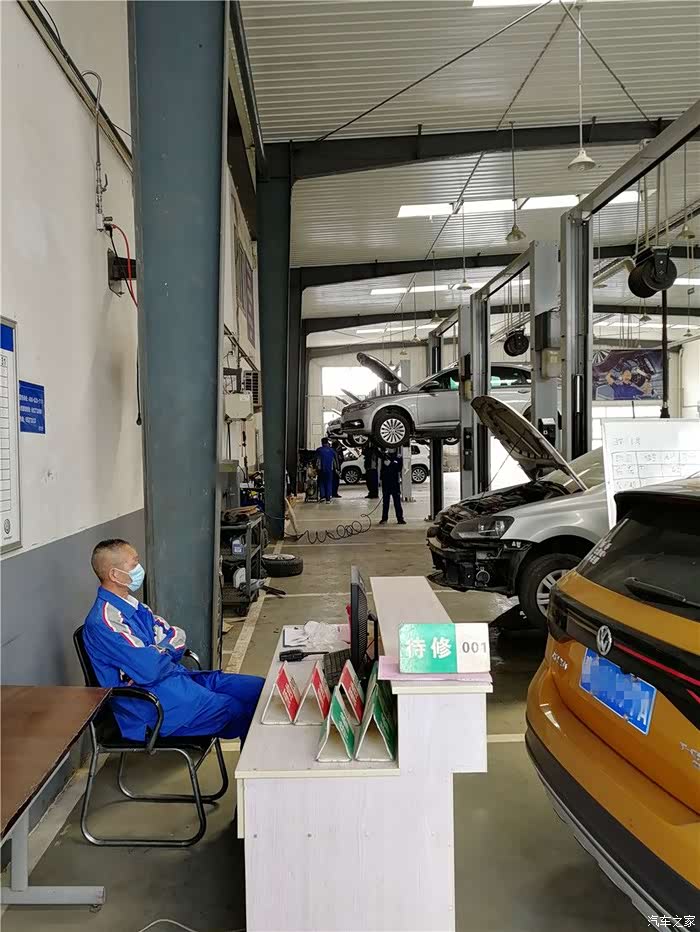 将车交给维修师傅后,由维修师傅开到工位。