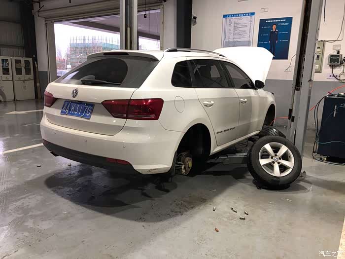 车辆上架,拆下了4条原车轮胎,服役了12万公里的轮毂暂时退役,以后年检的时候还要披挂上阵的哦