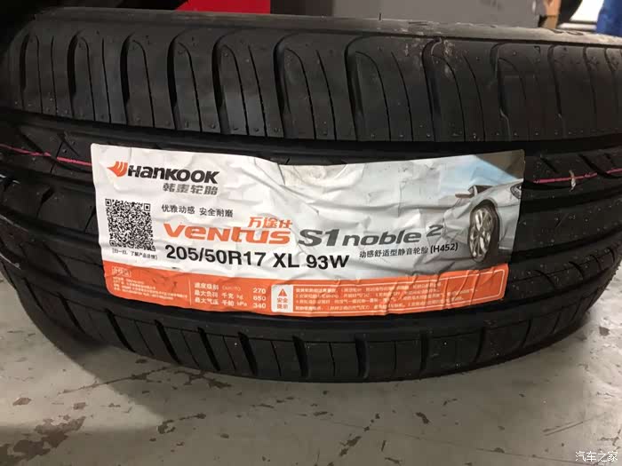 4条205/50R17的韩泰万途仕静音舒适型轮胎,本来我是要订米其林浩悦4的,4S说这个尺寸的米其林原装附件没货,就订了韩泰了,感觉也还可以。