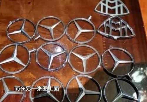 从网上的图片可以看到,两个男孩子正跪在地上,在接受家长的训话,看上去很委屈。而另一张图片显示,整整齐齐地摆放着14个车标,12个奔驰,两个迈巴赫。很显然,这些车标就是这跪在地上的哥俩干的。