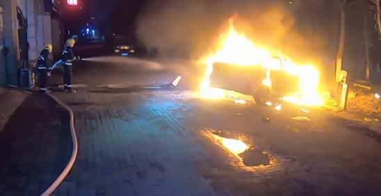 到达现场,警戒组立即对现场进行警戒。经侦查讯问,得知一辆电动汽车在充电过程中发生火灾,驾驶员受伤后已经逃生,车辆火势呈猛烈燃烧状态。经过大约20分钟的紧张扑救,现场明火被扑灭,确保无复燃可能后,移交现场收整器材返回。