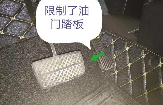 好些脚垫都是很厚的,垫在车上,踩在上面,感觉可能不错,但是还得考虑一下会不会影响车辆功能和性能。遮挡在油门踏板上,这样一不注意可是会自动加油的噢,想想是多么的可怕。还有这么厚是很影响油门踏板的活动的,有一些车主发现油门到底车速也跑不起来,问题是到底了,但是实际上还没踩下去啊