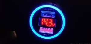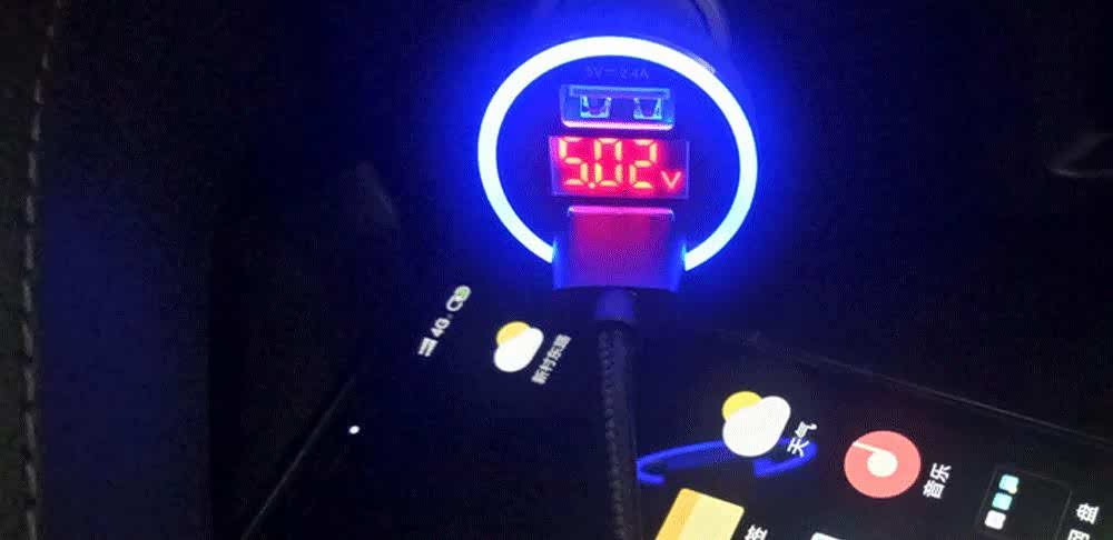 在充电器的顶部两USB口是间,插电后还会出现一个LED数显屏。通过这个数字屏我们可以实时观测到汽车的电压。实时监控汽车电瓶状态。当汽车在发动机未启动时如电压低于12V,就表示汽车电瓶可能有问题了,这时就要准备更换电瓶或做车检了哦!