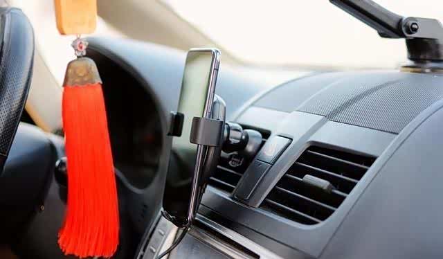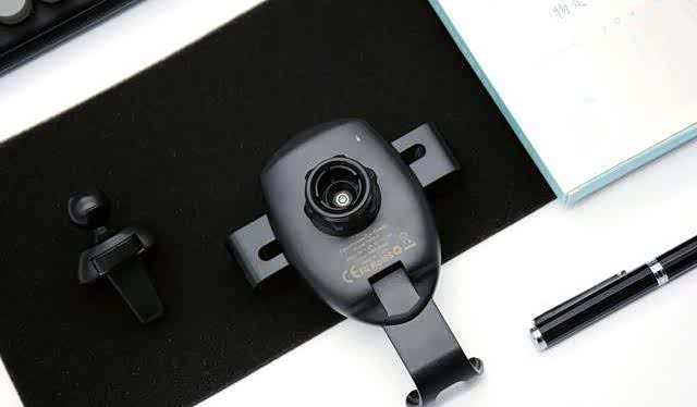 在车上,可以看到黑色的CHOETECH 车载无线充电器,与很多车内饰的黑色浑然一体,外观的搭配程度比较高。