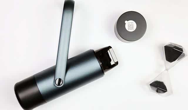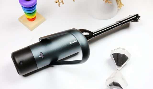 AutoBot 车载吸尘器的外观酷似一个带手提的保温杯,高度约280mm,重量780g,整体大小与一瓶可乐相当。吸头处设计有一个保护盖,盖上后真心看不出是一个吸尘器。