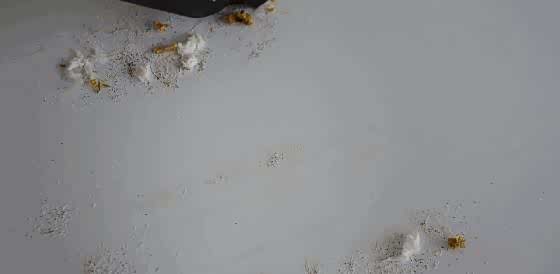 图中清扫的目标包括粗细不均匀的咖啡粉、纸屑、绒线、枯叶等,对于日常难以清理的这类细小的垃圾,清理效果明显。