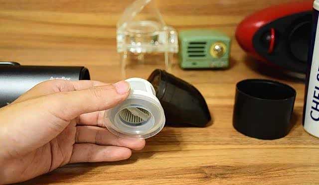清理尘盒很简单,旋拧尘盒将其拆下,抽出尘盒内的滤芯,倾倒出灰尘,也可以用吹风机或者用水冲洗尘盒和滤芯,待晾干后再装回去。