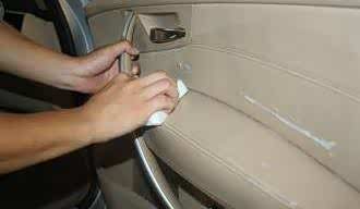 第三步:用丝绒清洗剂或真皮膏喷涂于丝绒座垫或真皮座椅上的污迹处,再用干净的棉布擦拭干净。需要注意的是,对于皮革部位,要使用水性的保护剂,因为油性的易招灰尘,弄脏衣物。