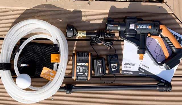 任何工具都是朝着便携、精细的方向发展,洗车机也不例外,传统意义上的洗车机都是接民用电的大家伙,而且非常笨重,不但如此,还得需要有专门的场地,而拿到这款威克士便携洗车机以后,完全颠覆了我对传统洗车机的概念,第一眼看到她就满满的德国味,整体给人一种高品位、高档次的感觉,从外观上来讲,这个洗车机的颜色搭配非常赏心悦目,从电池到手柄再到喷头,浑然一体,手感极佳,单单从外观上就已经把洗车这种繁琐的工作变成了高档生活的一部分,而重要的是这款洗车机虽然名字如此,但不单单是洗车,随便你洗什么东西,几乎无所不能,配件还算是比较齐全,而且从主机到配件,做工精致无比,十足的德国范儿。