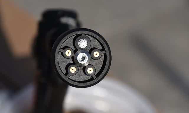 喷头的设计我觉得也是个亮点,不是我就轻避重,只是我比较关注于细节,至于洗车机的性能后边会提到,单说喷头,五种模式完全可以适用于任何场景,不管是洗车、洗玻璃、洗这个洗那个,三个字,没问题,搭配上高低压模式,可以说一共有10中模式供选择,而且调节也很方便,只需要转一下即可,喷头后面是铜质接头,不用多说,从一个喷头上就能体验出这款洗车机的高档之处。