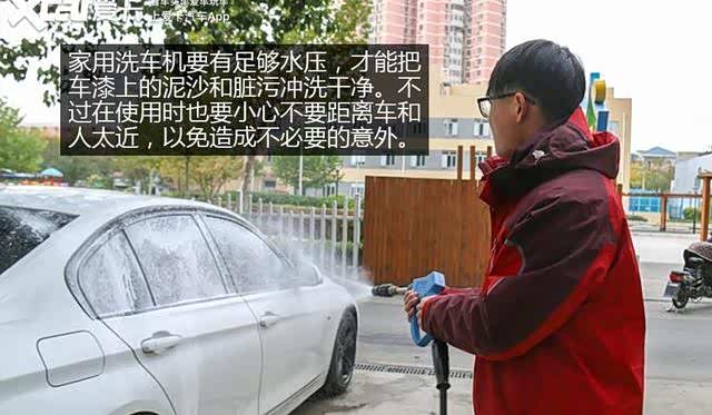 另外,家用洗车机最重要的还是要有足够的水压,只有水压够高,才能把车漆上的泥沙和鸟屎等都冲下去,然后才能放心地洗车。如果车漆上的泥沙都没有冲干净,就直接用布擦车的话,最终会造成车漆上都是太阳纹,非常难看。