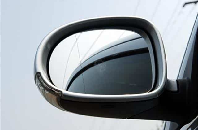 第4个是有关于后视镜,现在采用的一种设计方式是会在整个后视镜上采用两块不同的镜面玻璃组成。所以后视镜上就会出现一道比较明显的竖线。以这条线为准,靠近驾驶室的一侧是此前到正常镜面,外侧的部分则是用的一种凹凸镜。这主要是为了能够让车主及时的观察到离自己较远的一部分区域便于车辆的正常行驶。