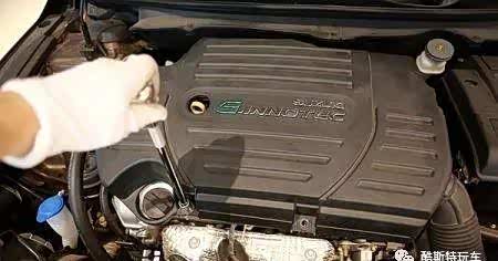 接着,拆除发动机装饰盖。发动机装饰盖是塑料材质,面积大,以卡扣方式固定住,可以拆卸。表面的灰尘最明显,并且装饰盖下方的油污较多,只有将它拆下才能清洗下方的零部件。