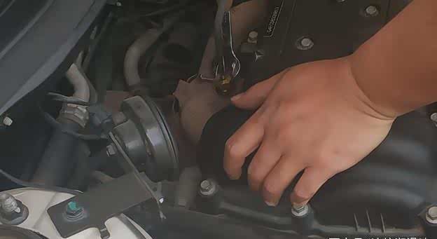 老师傅用手伸到排气管,未感觉有气流,启动发动机,加大油门未达到最高车速,怀疑是三元催化器堵塞,为了验证,老师傅打开发动机机盖,拆下氧传感器,用内窥镜观察三元催化滤网中沉淀物的情况。