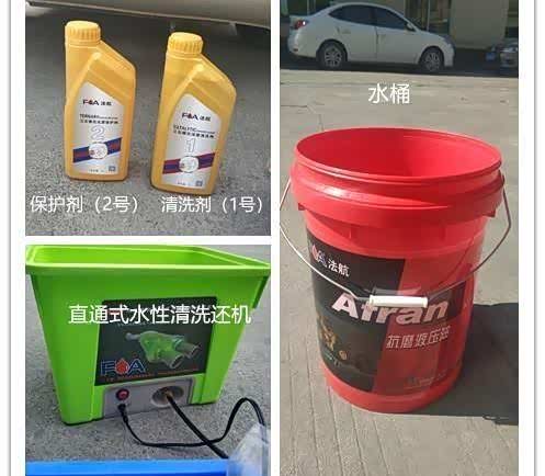 前期准备:三元催化清洗剂和还原保护剂、三元催化直通式水性清洗还机、一个水桶(用来装清水)科普一下:三元催化清洗剂:畅通三元催化器管路,降低排放、降低油耗、提高动力三元催化还原保护剂:彻底清除三元催化器中的硫磷化物物及积碳,恢复原车动力,有效延长三元催化器的使用寿命