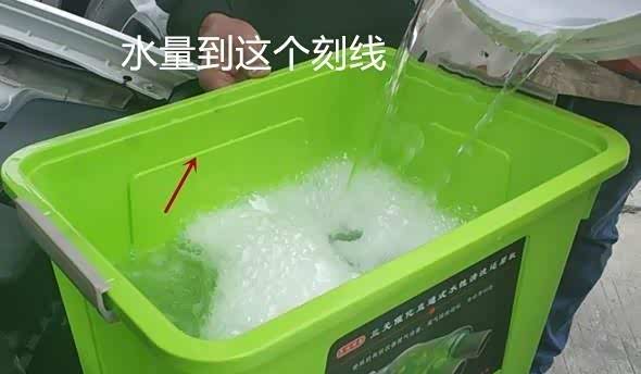 操作步骤第一步:将清洁剂倒入直通式水性清洗还机中,然后加一桶清水。(如下图所示。)