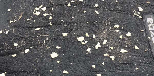 这次我们特意找来黑色的汽车地毯进行清洁测试,分别使用白色粉末、泥巴以及薯片碎洒落在黑色地毯上,让这些垃圾过敏原显得更明显。