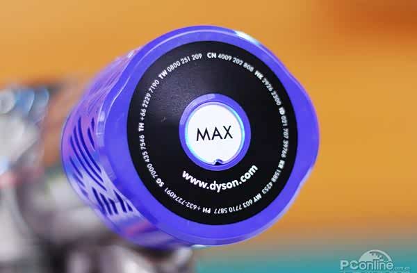 主机的底部电池容量为2100mAh,最长高达20分钟的清洁时间,而在MAX档位下进行测试,可以连续工作6分钟。由于dyson这款V6 Car+Boat手持车载吸尘器的吸力强劲,所以在内饰清洁或者家居清洁花费的时间将会更短。