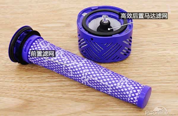 当马达以及出风口的过滤网积存灰尘时,会导致过滤效果以及吸尘能力下降,使消除灰尘以及过敏原大打折扣。所以我们必须对其进行定期保养。而后方配备的马达滤网,同样可以通过旋转的方式拆下,进行清洁。这块后置马达滤网主要是过滤吸入的灰尘以及过敏原,从而杜绝二次污染,根据官方介绍,它能去除99.9%小至0.3微米的颗粒。