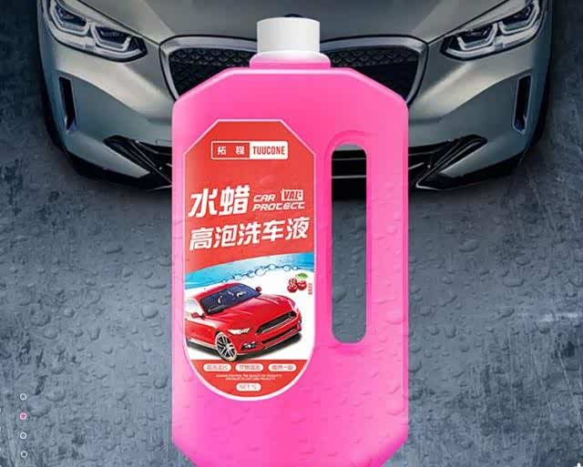 富含泡沫的浓缩洗车液,蜡水成分,洗车和保养二合一,浓缩玻璃水可快速分解玻璃上的昆虫体油,并用海绵清洗,快速而且简单。