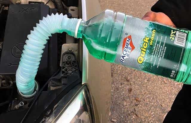 将导管的加注嘴插入水壶,加好后拔出导管,盖好水壶盖子就完成了。友情提醒,一定要选择高质量的品牌玻璃水,便宜劣质的玻璃水不仅清洁力差,还容易产生水垢堵塞管道,冬天防冻性能很差会冻坏爱车。