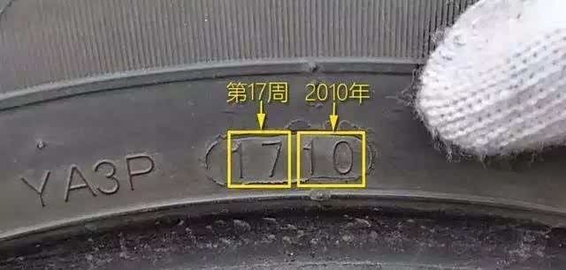 从我配的两张图片中你看的是3617和1710,表示的这两个轮胎分别是17年的第36周和10年的第17周生产的,算下来分别就是17年9月份和10年的5月份生产的。