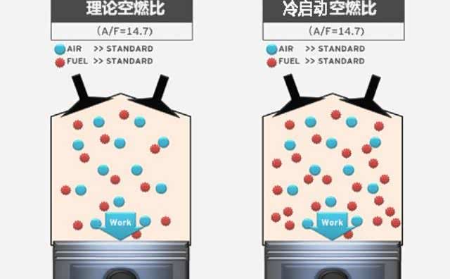 在冷启动发动机时,ECU行车电脑会主动加大喷油量与提高转速,以燃烧更多燃油产生更多热能的方式补偿被冷却损耗的动力;但是在这一过程中总会出现喷油量大于标准空燃比(空气燃料比14.7:1),比例的错误等于没有足够多的空气中的氧气为燃油助燃,也是混合油气会出现燃烧不充分。这种燃烧状态不仅会造成碳氢化合物等有害气体的超标排放,同时还会造成颗粒物的超量排放;这些游离碳颗粒还是形成积碳的基础,这些积碳积少成多凝结在发动机与排气系统的各个位置上之后,发动机则会出现持续性的【燃烧不充分】!
