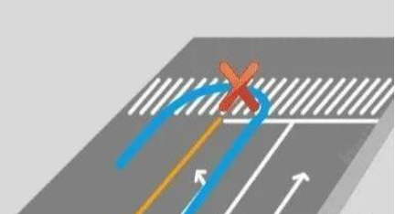 掉头要越过人行横道,不能压着人行横道掉头(可以压橙色网格线掉头);