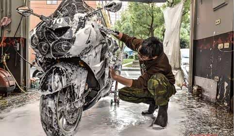 使用高压水枪冲水除了是将车体喷湿之外,最大的目的在于使用高压水柱将附着在车身上的脏污及沙尘冲刷掉,避免待会洗车时泥沙刮伤烤漆,当然这高压水枪不能对人喷之外,车上的几个部件也需要特别注意,除了保持一定距离冲洗避免冲坏烤漆外,外露的电线、手把上的开关座椅以及仪表板在冲洗时都须特别注意,另外还有很多人都会忽略水冷排,记得要用水管冲洗散热鳍片,避免高压水柱冲损。