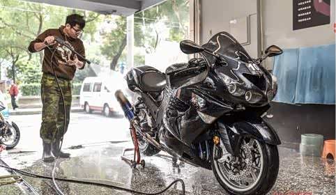 然而这其中还是有些地方要特别注意!比如刚跑完赛道或是山路,甚至于长途骑乘后,碟盘正烫的时候切勿洒水降温,避免造成碟盘变形;另外高温下瞬间冷却也较容易使引擎表层烤漆剥落,因此建议稍微降温至手可以直接触碰,不会烫伤即可开始冲水洗车!