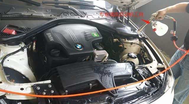 清洗发动机舱的时候,都是要提前做好防水,发动机舱内具有很多电器元件,这些地方可都不能进水,一旦进水可不单单是一个地方故障,一连串的会有很多设备故障,做好各方面防水之后会对很多细节的地方进行喷射专用清洗剂,完成之后使用软水冲式干净(软水和水枪并不相同,压力、水量小覆盖面积大),清理完成之后使用干净毛巾擦拭,因此清洗发动机没有一定的技术和经验千万不要操作。