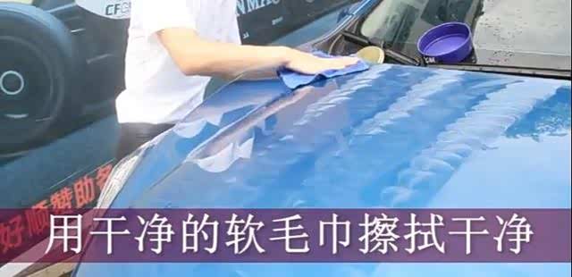 清洗完之后,我们需要用毛巾将车身彻底擦干。记住一定要等身完全干之后,才能进行下面的操作。
