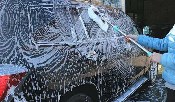 很多人洗车的第一步,就是用高压水枪先冲一遍,但车身表面,经常会有小的颗粒砂石附着,高压水枪压力很大,直接冲洗会造成摩擦运动,损伤车漆,同理,也不能直接用湿抹布擦车,抹布的摩擦,也会对车漆造成不可挽回的伤害,最好先用洗车拖把先把车面轻扫一遍,将沙子和泥土松冲干净后再擦。