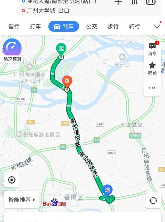 高速路线(约35km):南沙港快速路科韵路入口—南沙港快速路亚运大道出口-南沙港快速大学城出口。