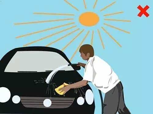 夏天洗车还要选择正确的时间,切勿选择中午洗车,最好选在阴天或是晴天的早晨、傍晚时分进行。因为水在漆面形成的水珠是典型的凸透镜,其效果会使漆面产生局部高温,时间久了会对车漆表面的光泽度产生影响。如果有条件,洗车最好能在有遮蔽的地方进行,并一定要擦干车后再开出来,这样对漆面有较好的保护作用。同理,洗完车之后也不要将车放到烈日下去暴晒,因为烈日下水滴形成的凸透镜效果会产生局部高温,使漆面逐渐失去光泽。