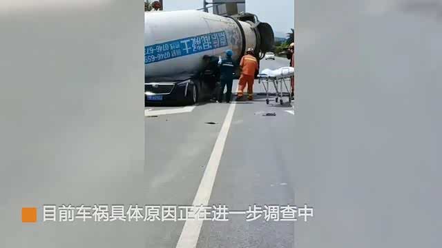 从网友提供的视频中可以看出,搅拌车的整个罐体压实在了小车车身上,小车承受了巨大的重压,车身上半部分完全凹陷进去。接到报警后当地消防部门、民警以及医务人员立即赶往现场进行处置救援。