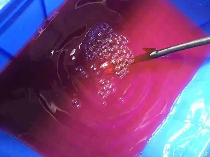 换旧液,液体颜色也不一样,所就作冲洗,因为没有专业的设备,就民间手段,如果有不足之处,见笑了。买了一罐蒸馏水去冲洗残留在水箱与发动机里头的旧液,蒸馏水的好处是杂质比较少吧。图中发现,还带点红颜色。