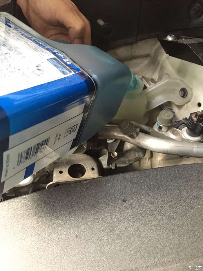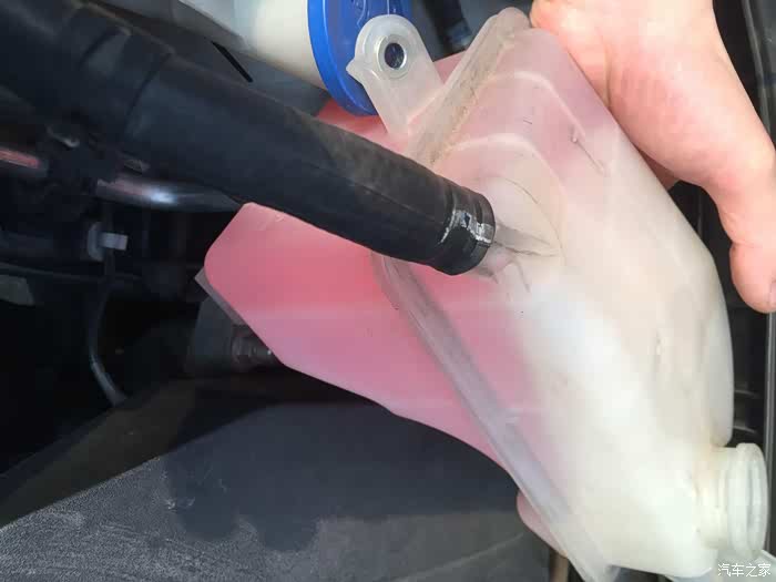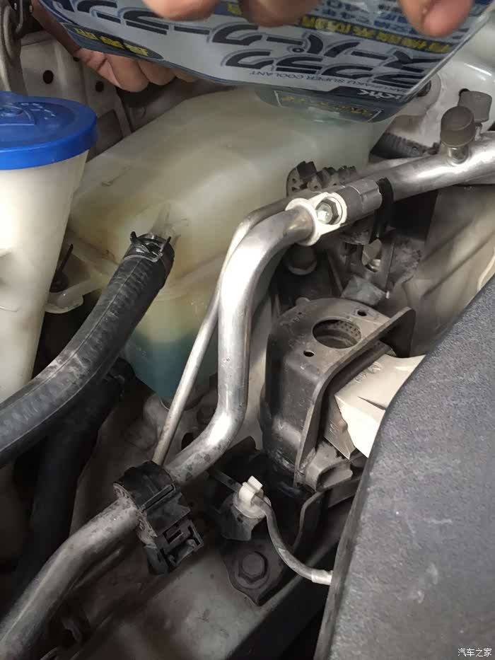 加入新液,启动发动机,排空。提醒大家,不要以为外面几块钱一瓶的水箱宝很好,我还是不建议大家勾兑。质量也参差不齐。