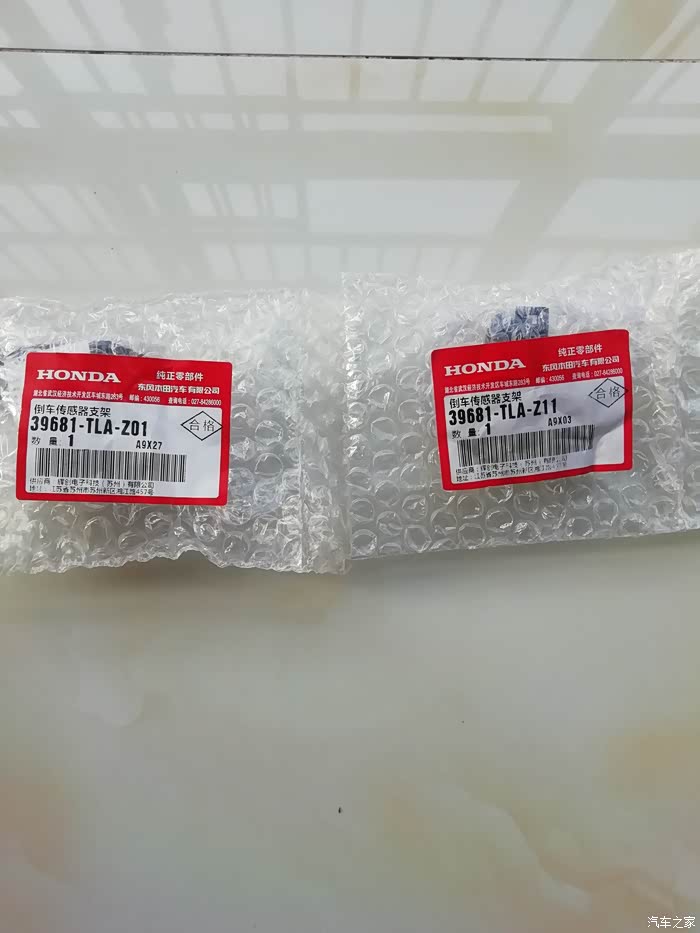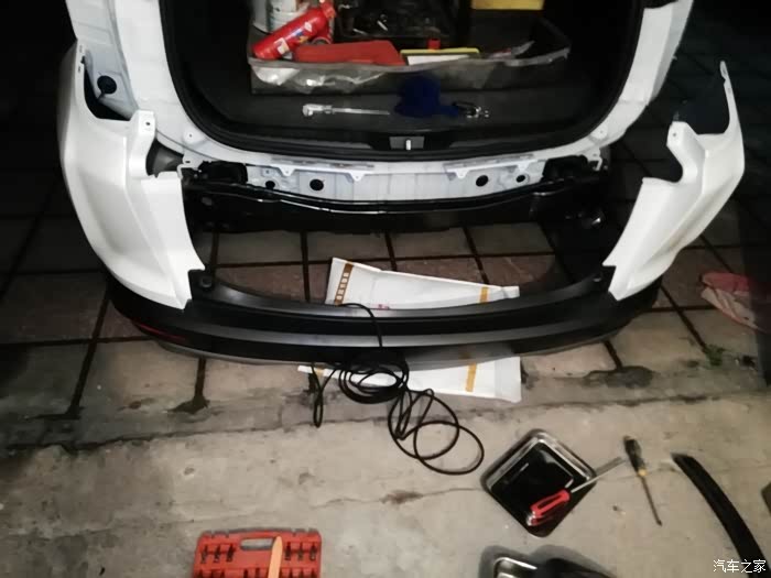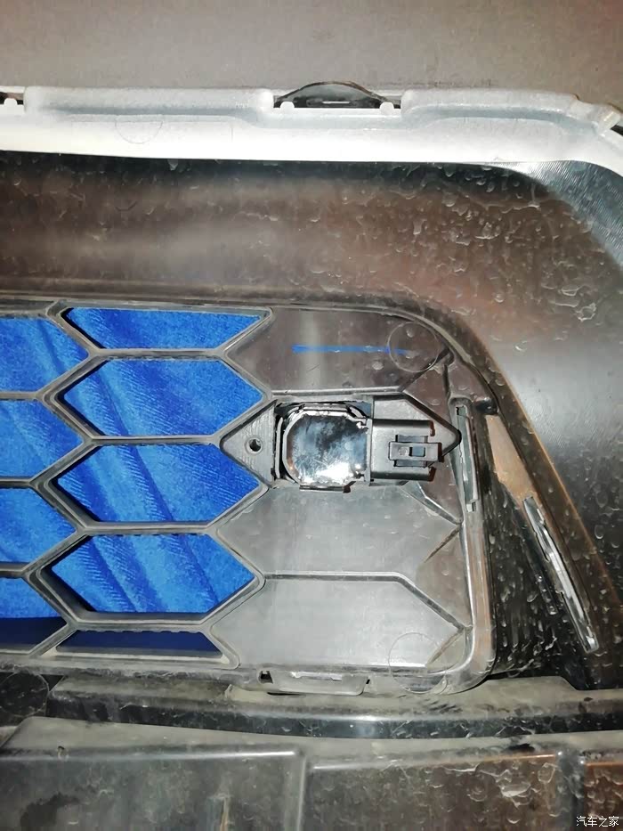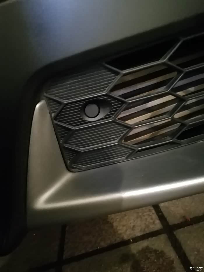 我的车是白色,前雷达分两种一种全部打孔在保险杠上,另一种是旁边两个打孔,中间装在中网上这是原车的安装方法,需要另外购买两个雷达底座