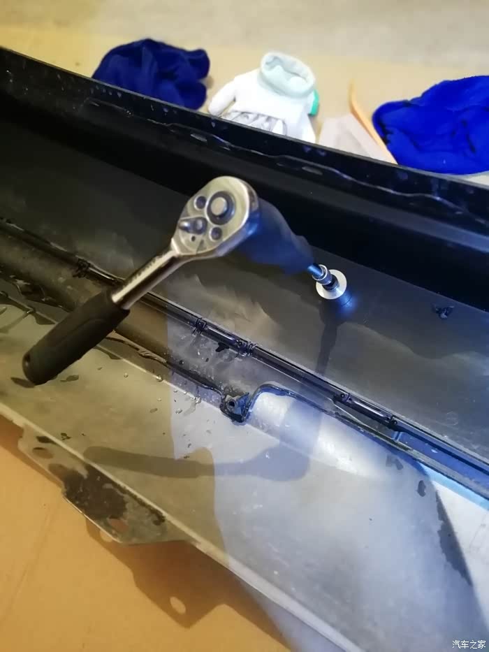 原车雷达位置孔,电钻开动
