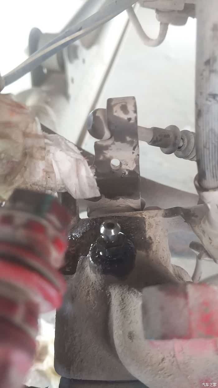 分泵上下各一个螺丝,拆起来不难,也不算特别紧,注意拆下边一定要精心,上边就是油管,