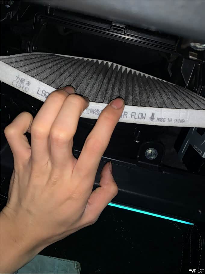 拿了出来就可以看见空调格就在里面了,拿出去换上新的就行,然后按顺序把空调外盖板拍回进去再把储物箱装回便完成更换!