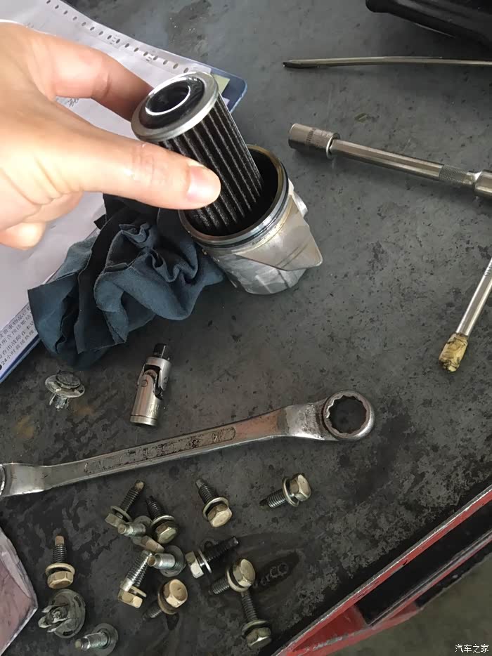 上一次是6万公里换的。这次11万多公里换。拆油底壳,换纸质滤芯,清洗油底壳和磁铁。4s换的。总共708块。以前打折才590多。哎。这次贵了。