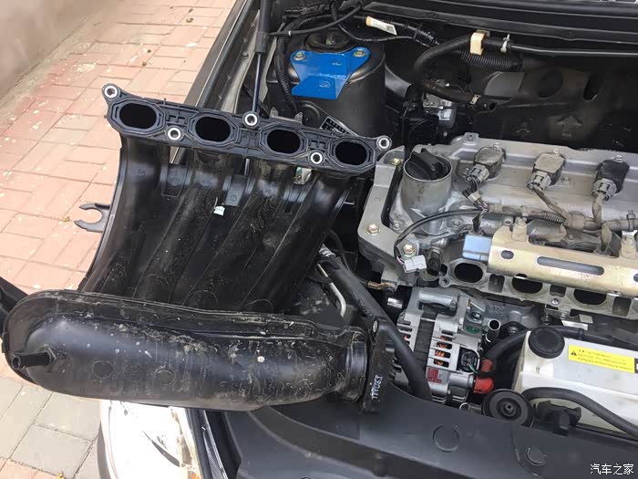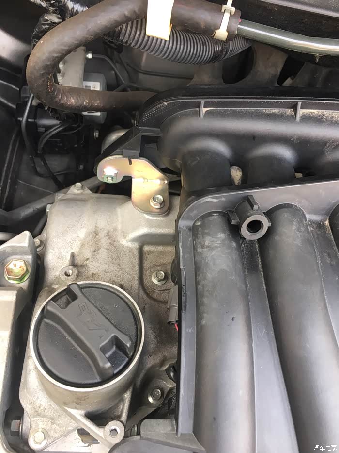 拆下盖板,进气歧管,发动机前面五个螺丝,后面两个螺丝,拆后面得先卸掉节气门