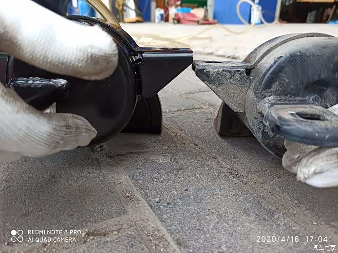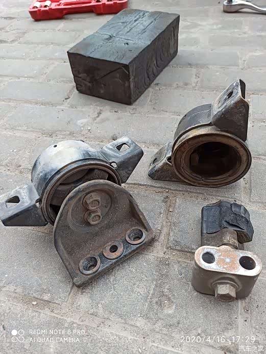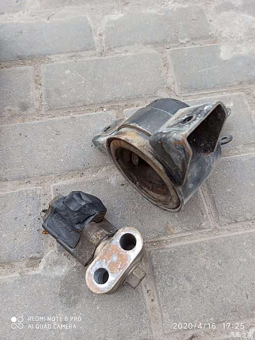 左边是换下的发动机机脚,右边是换下的变速箱机脚,这次换的真不亏,绝对是该换了,在此谢谢维修店老板帮忙检查出来的隐患。