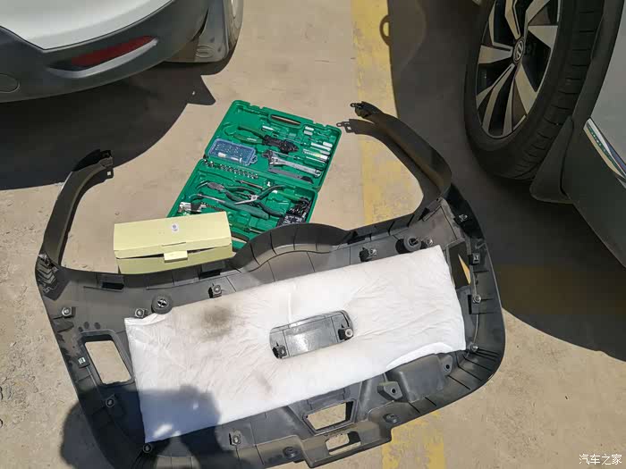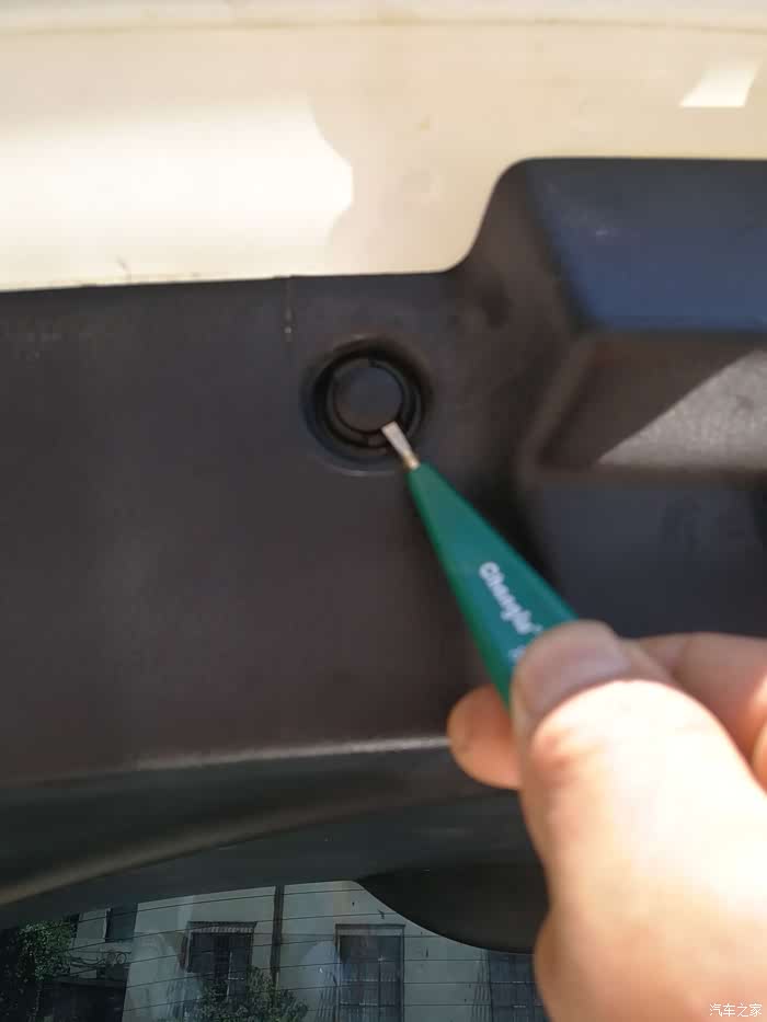 仔细观察新后备箱开关,没有固定螺栓,是卡扣上的。选择直接撬下来。