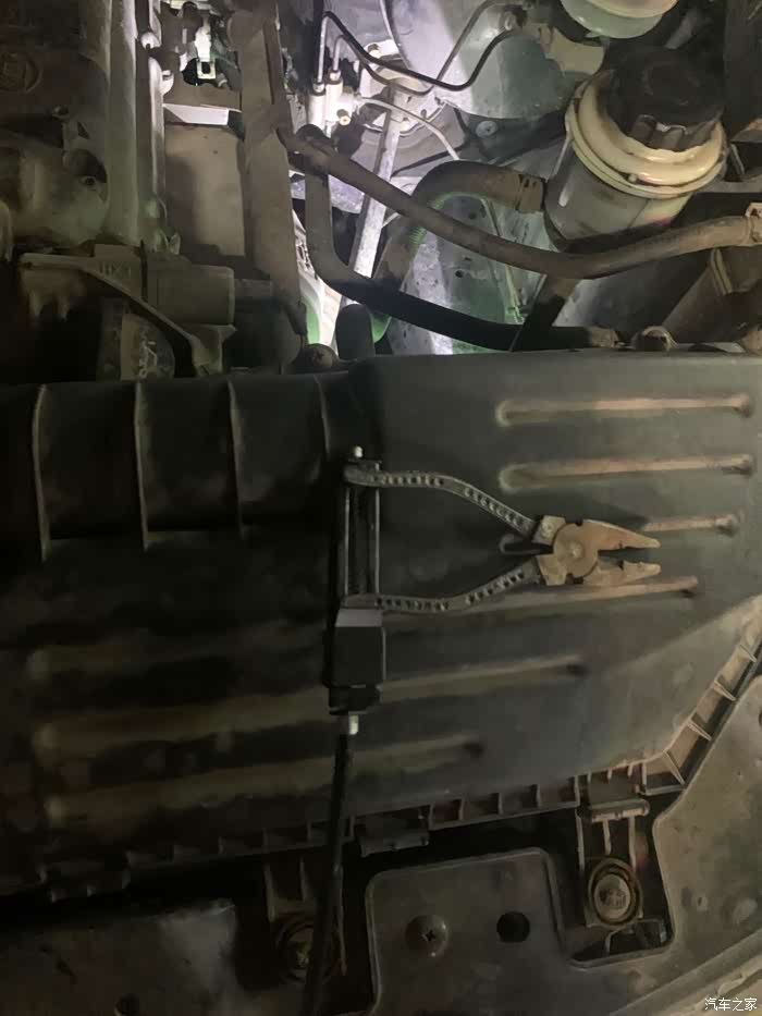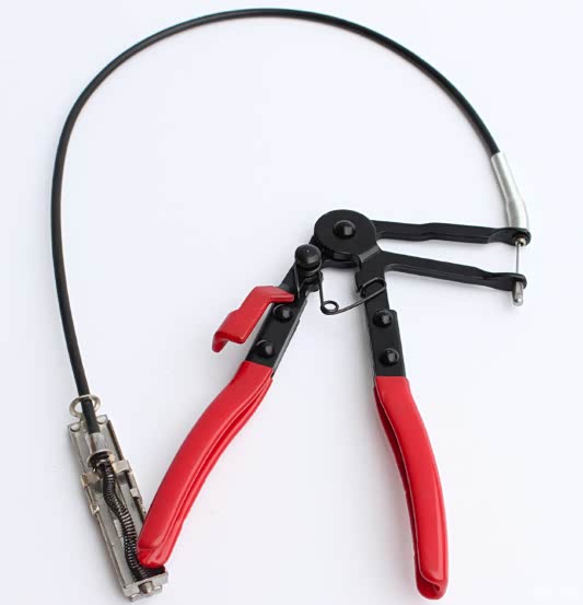 此工具是必备的,因为操作空间非常有限,只有靠这个将原来水管的卡子松掉。具体名称:汽车水管钳子可弯式喉式管束夹钳