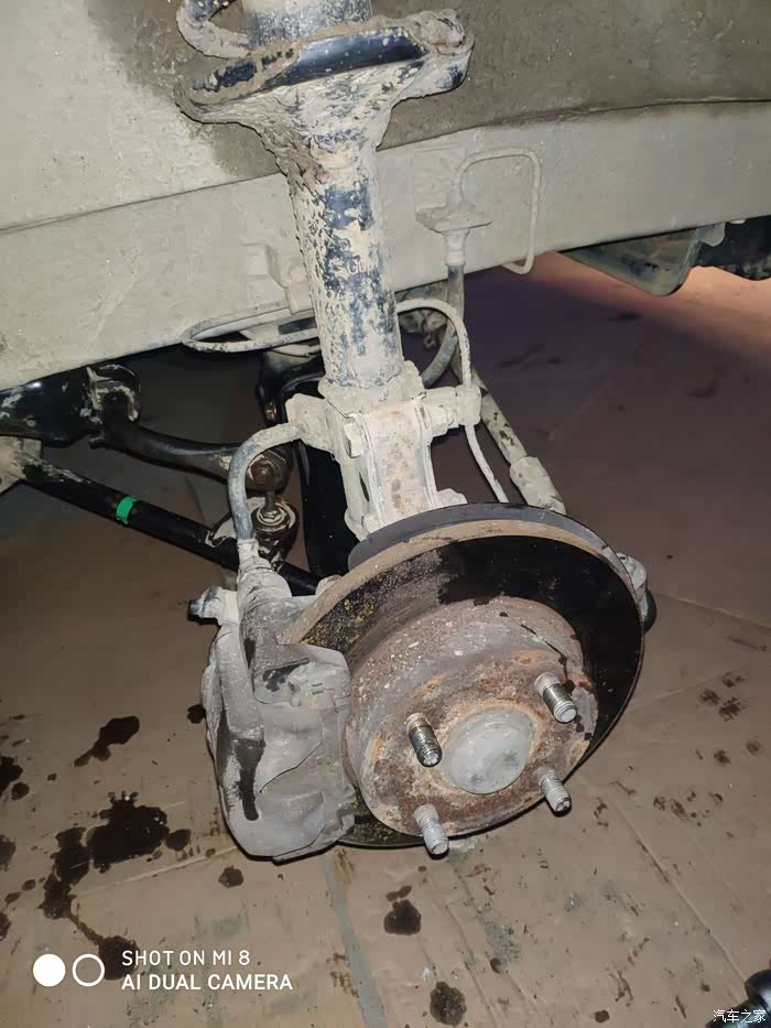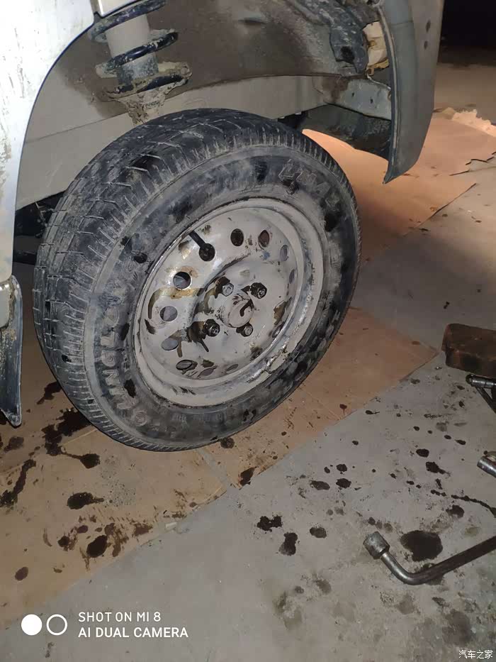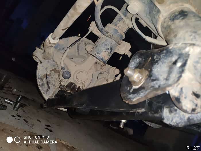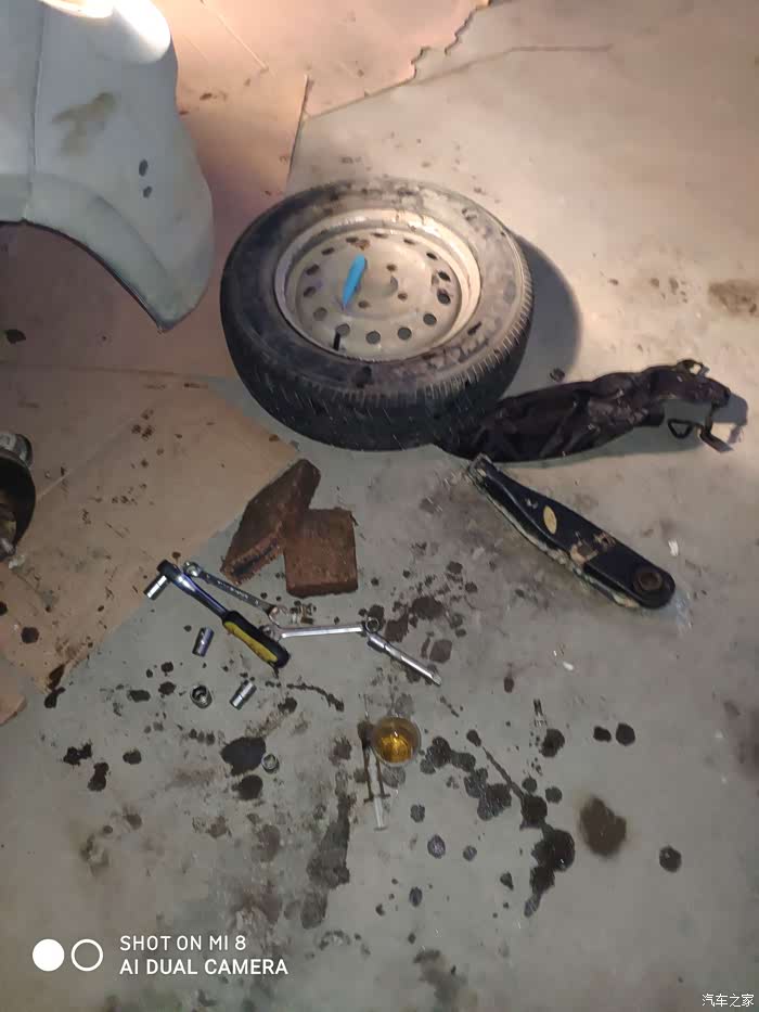 行驶过程中,右边下支臂球头脱落,导致轮胎移位。千斤顶升起,敲进去,继续行驶了十五公里左右到家。(途中掉了几次),基本都是一转弯,大弯就脱落。